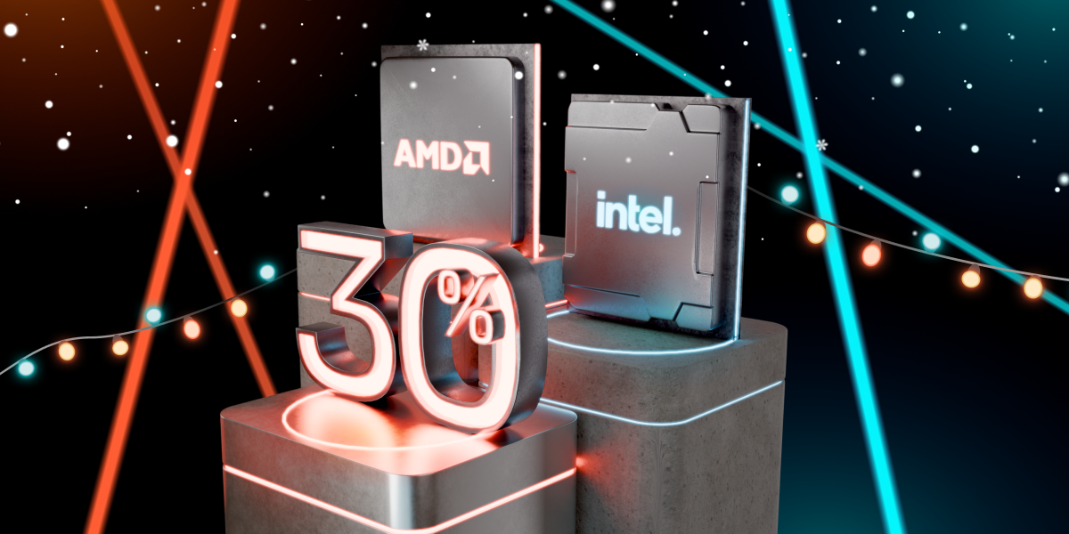 - Скидка 30% распространяется на следующие ресурсы: процессор, платформа, оперативная память, диски (HDD/SSD/NVMe).
